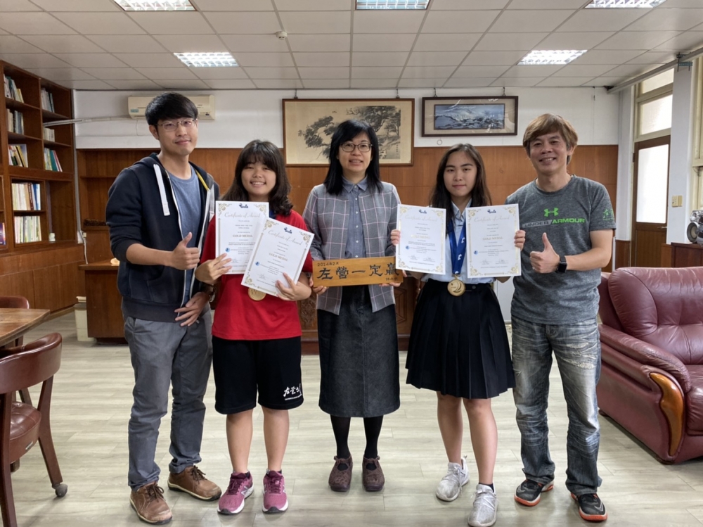 本校2年1班張雅宣同學、2年8班古于芳同學代表學校參加「2019高雄KIDE 國際發明展暨技術展」~榮獲雙金牌.. 指導老師:數學科吳鴻忠老師。