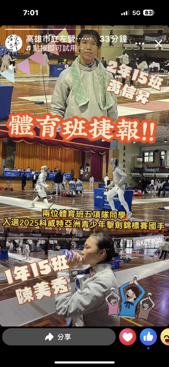 215萬信昇、115陳美秀同學獲選2025科威特亞洲青少年錦標賽國手