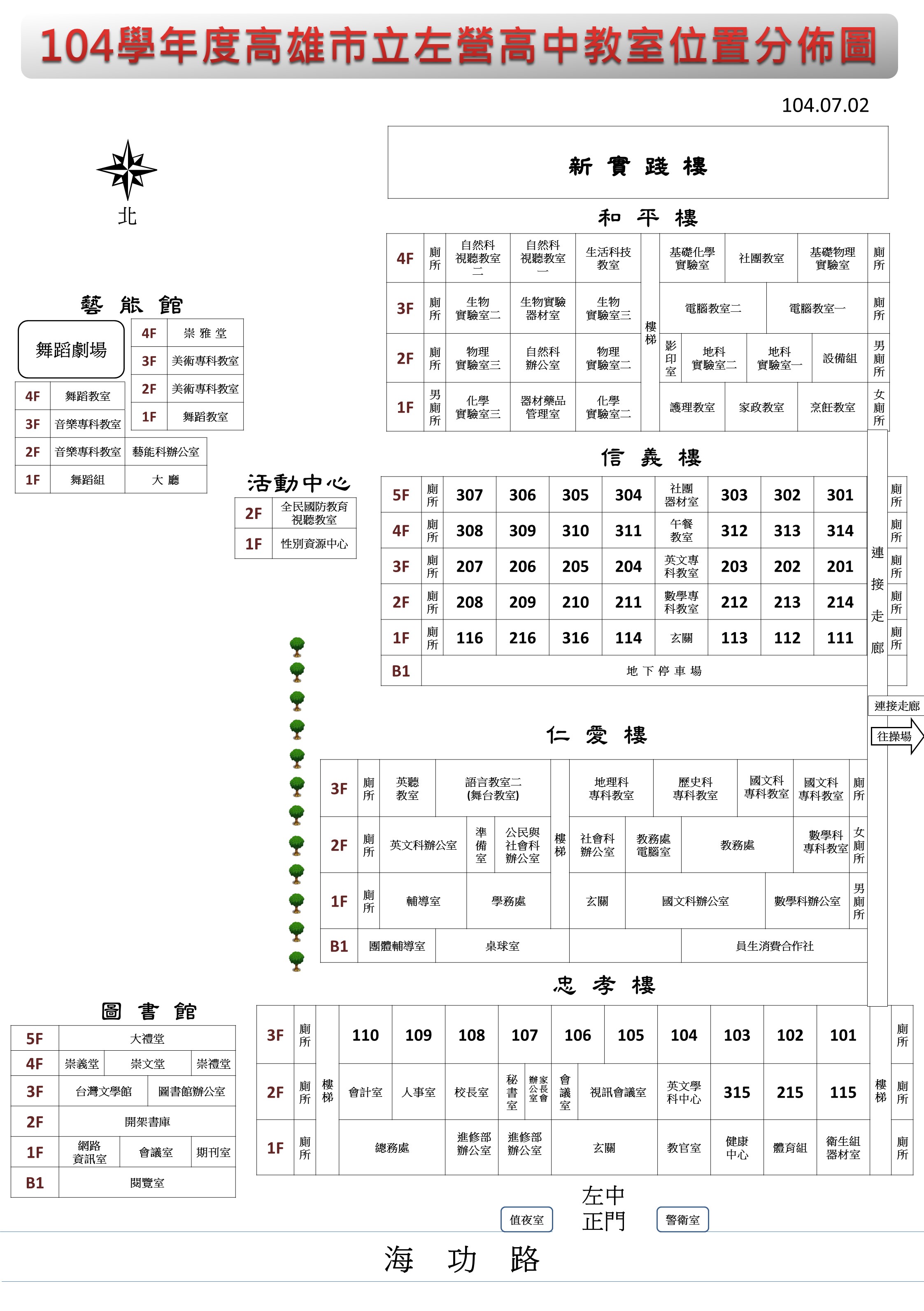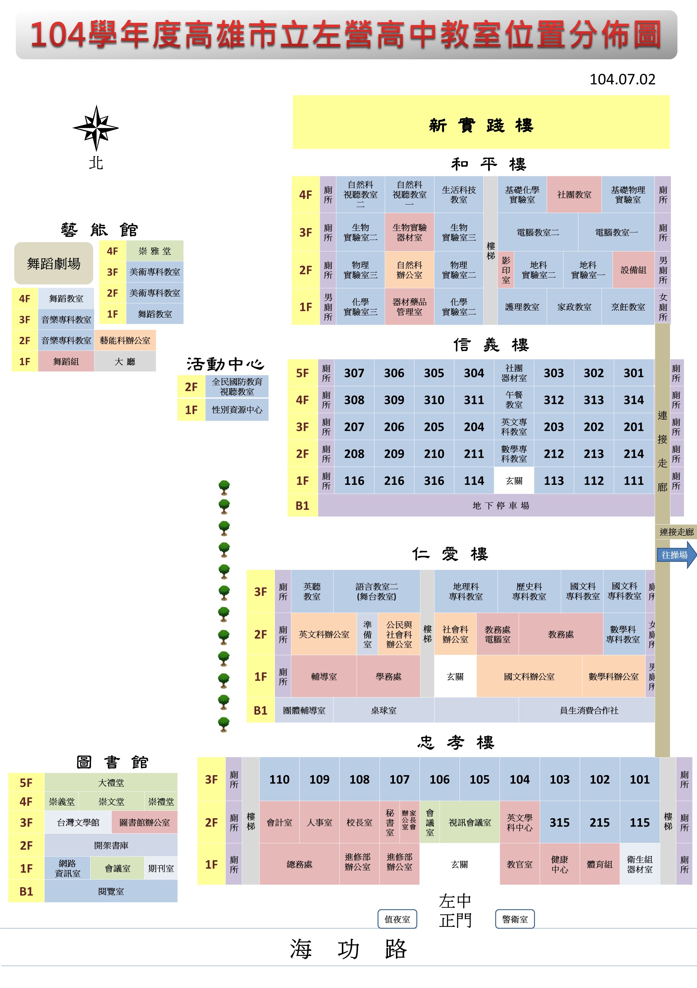 | 2015/07/27 104學年度左營高中校舍和教室位置配置圖公告 |