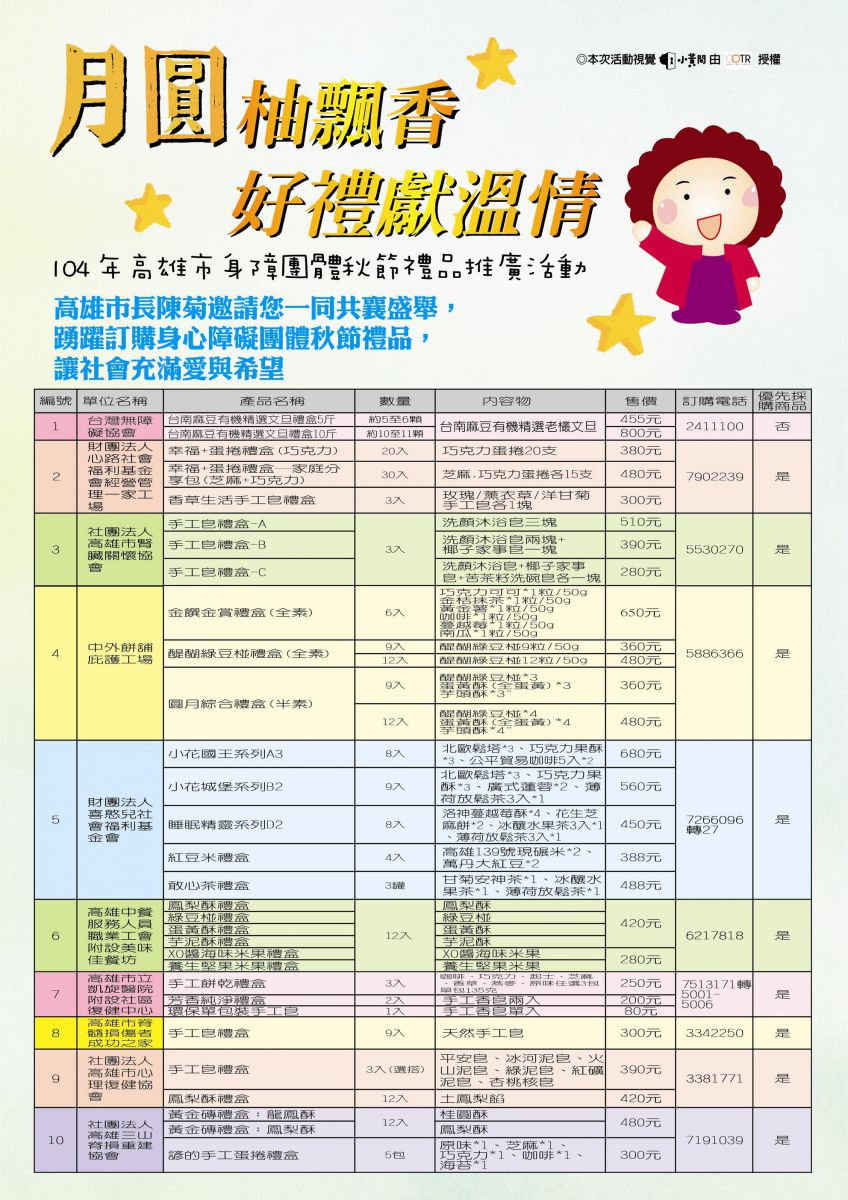 月圓柚飄香,好禮獻溫情─104年高雄市身障團體秋節禮品推廣活動,請查收。