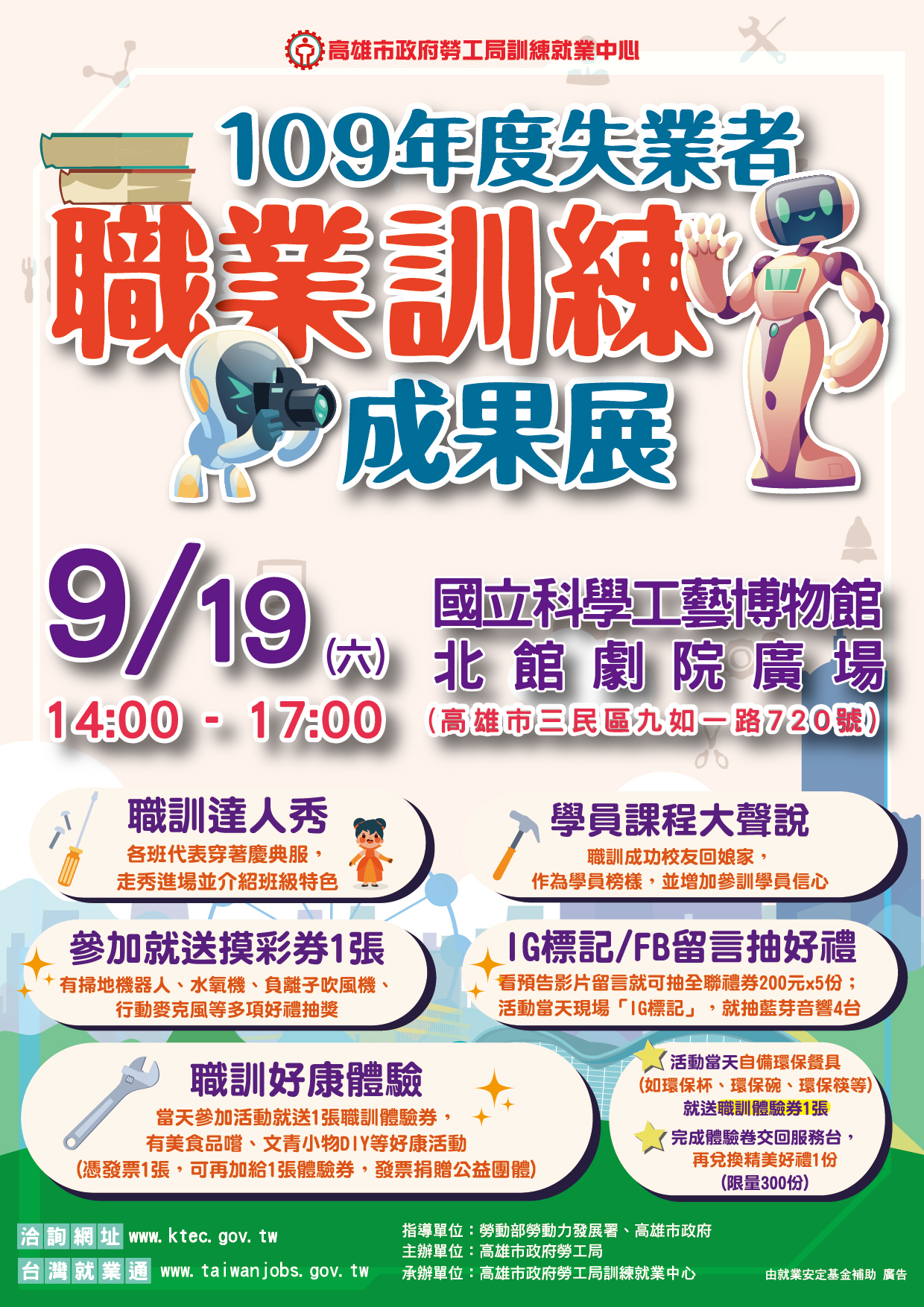 勞工局訓就中心9月19日下午2點在科工館北館劇院廣場辦理職訓成果展,
