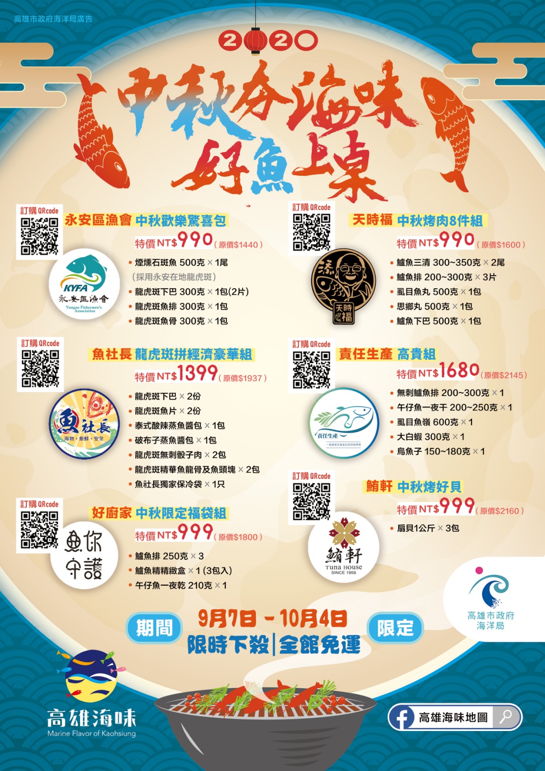 中秋佳節將至,高雄市政府府與本市6大水產業者合作,推出「中秋夯海味•好魚上桌」組合包,