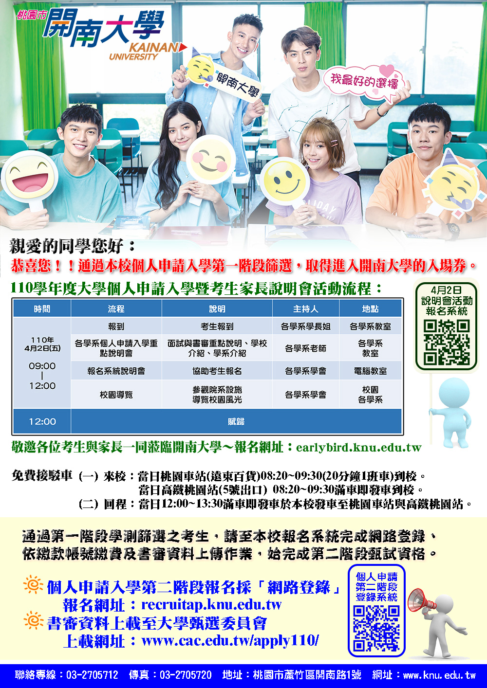 開南大學110學年度個人申請入學暨考生及家長說明會」,請詳附件說明。