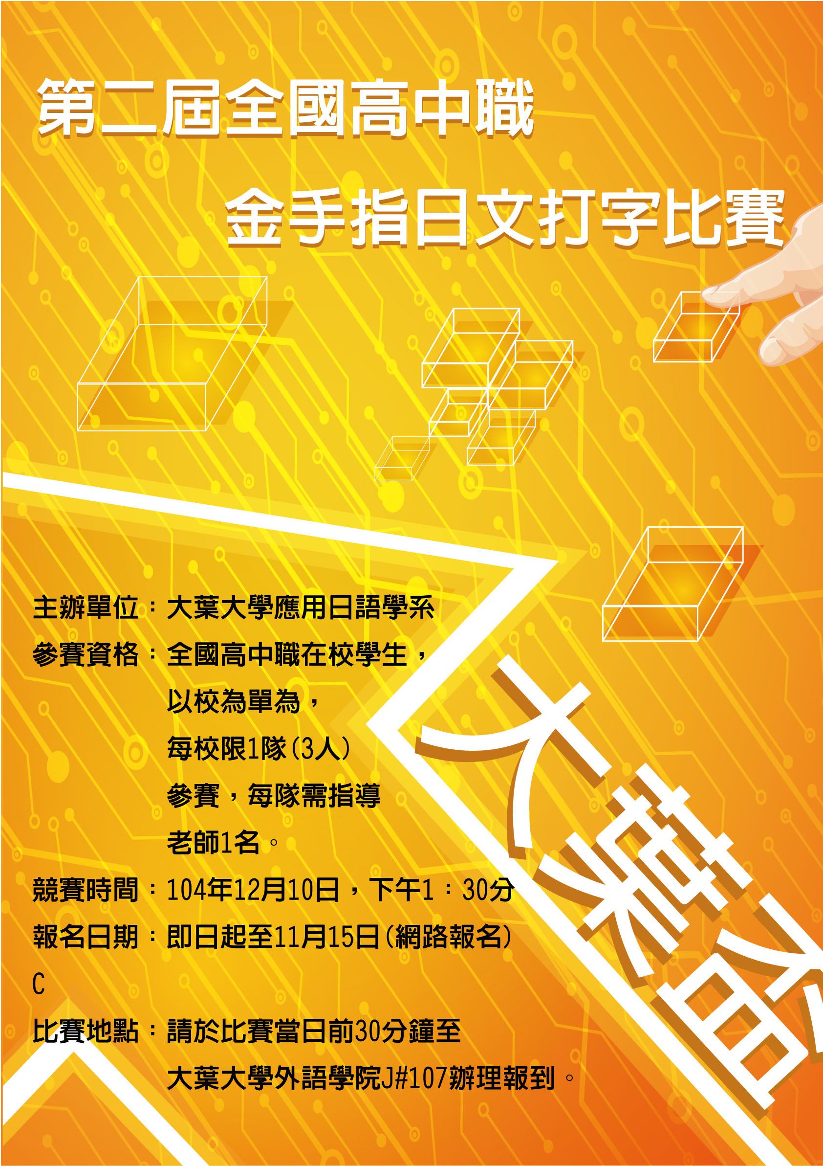 附加檔案:大葉盃第二屆全國高中職金手指日文打字比賽海報.jpg (525.88 KB)