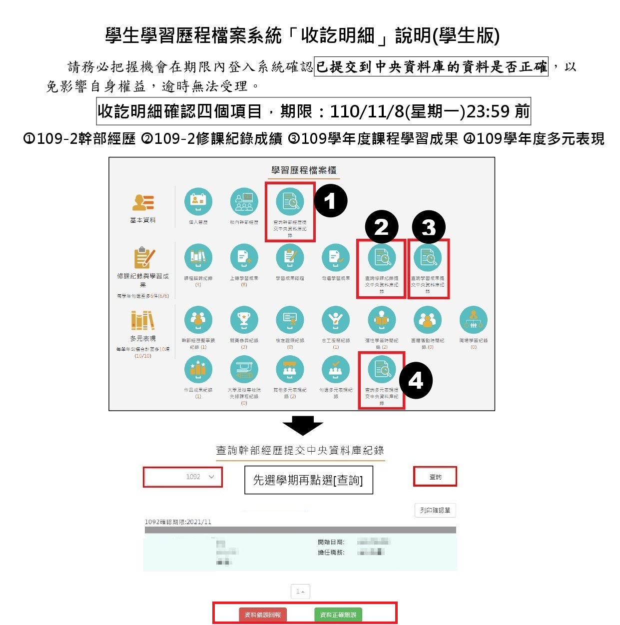 | 2021/11/05 109第二學期【收訖明細】確認時程 |