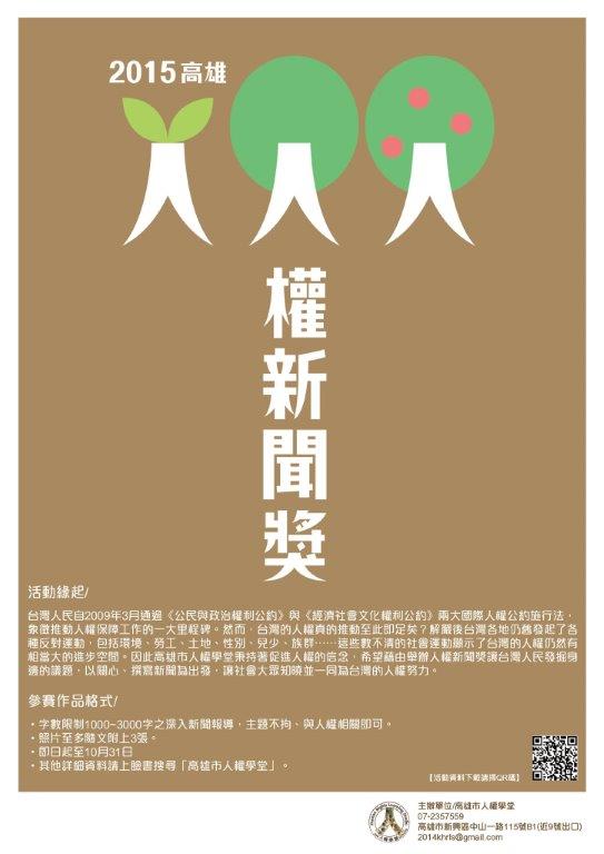 | 2015/10/27 「2015高雄人權新聞獎」徵稿活動 |