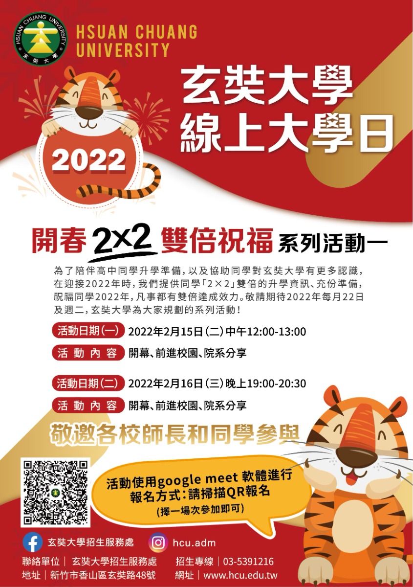 玄奘大學開春「2*2」雙倍祝福-線上大學日活動,鼓勵同學報名參加。