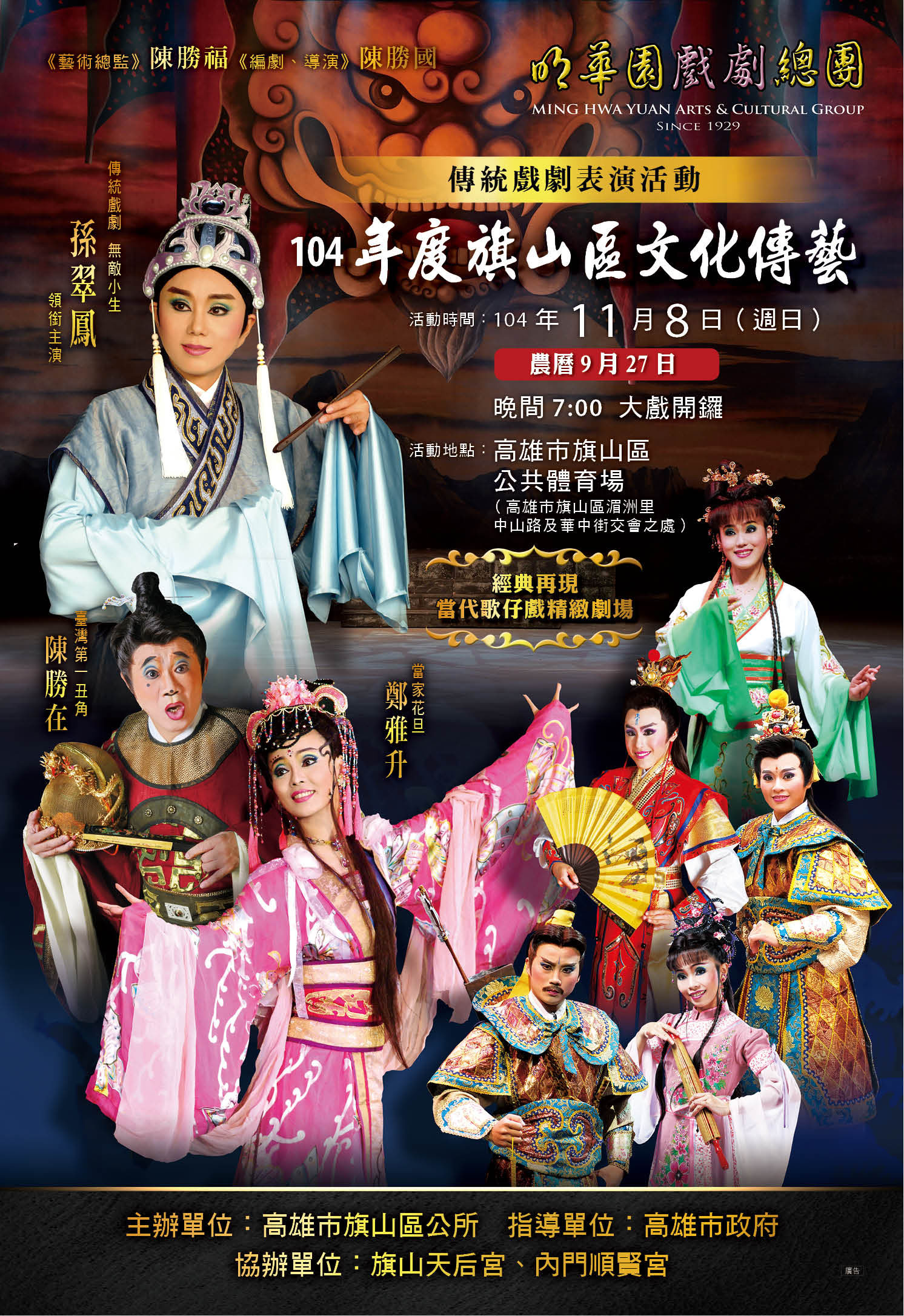 | 2015/10/30 高雄市旗山區公所辦理「104年度旗山區文化傳藝-明華園戲團歌仔戲表演活動」,請踴躍參加。 |