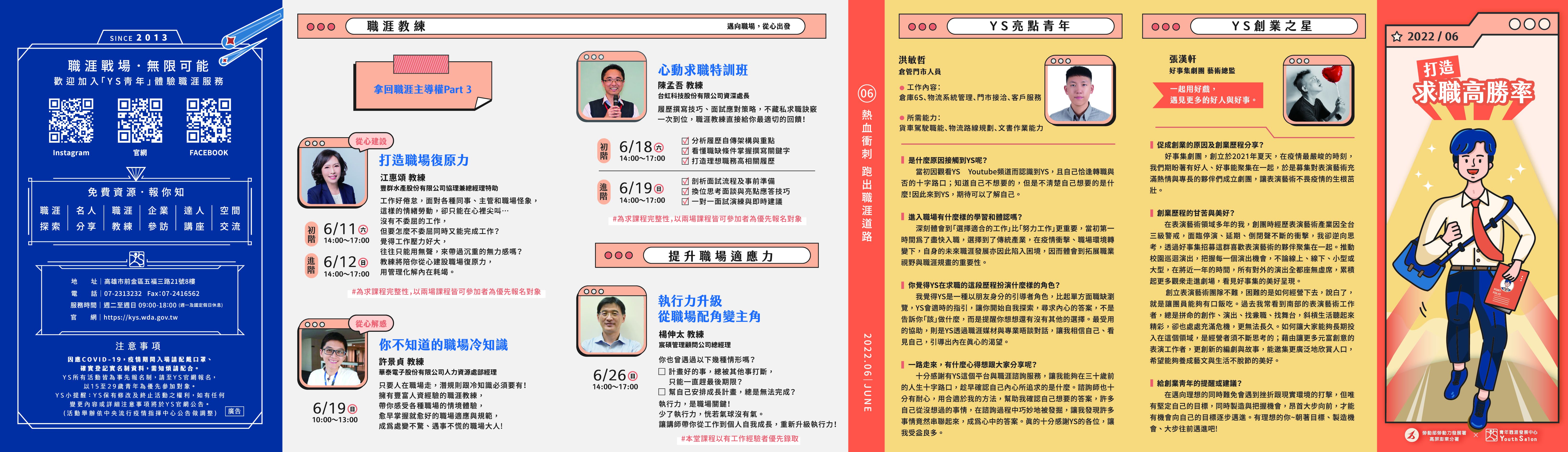 勞動部勞動力發展署高屏澎東分署「青年職涯發展中心」(Youth Salon,以下簡稱YS)111年6月活動DM,請惠允協助宣導,請查照。