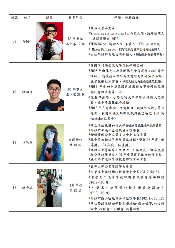 欣賀本校第五屆傑出校友當選名單