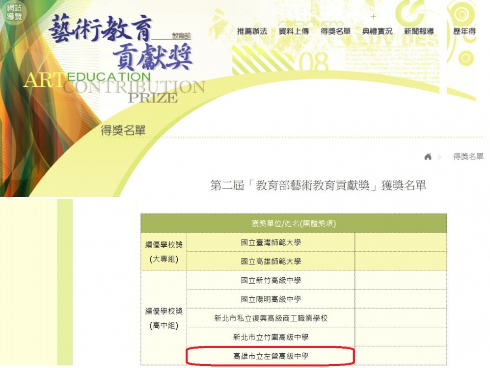 | 2015/11/19 欣賀本校榮獲第二屆「教育部藝術教育貢獻獎」 |