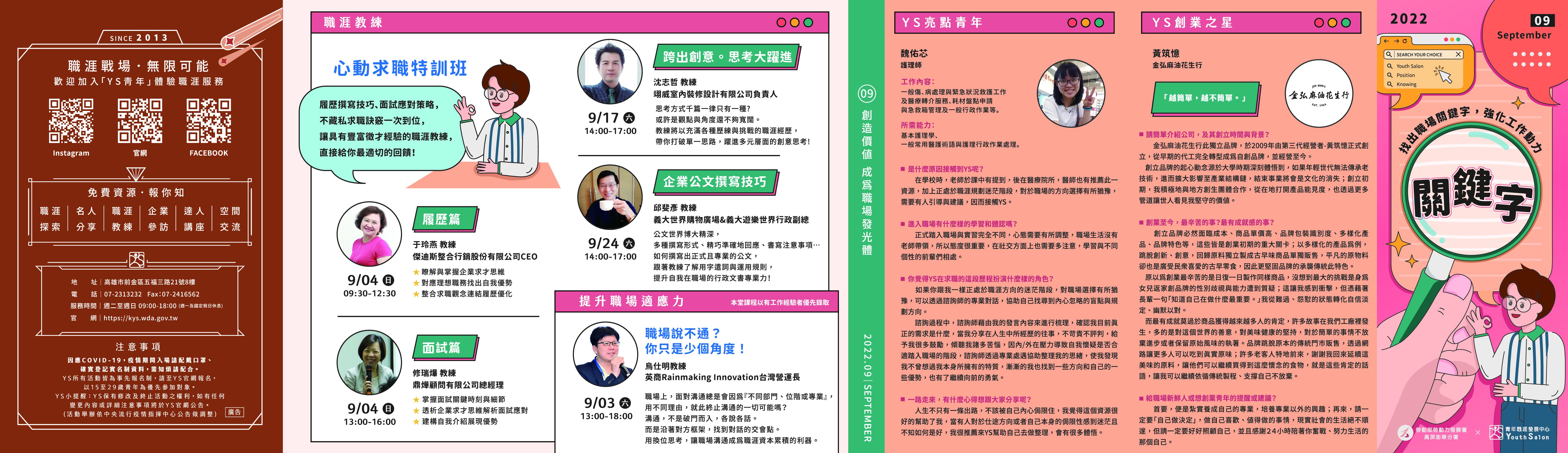 | 2022/08/26 「青年職涯發展中心」(Youth Salon,以下簡稱YS)111年9月活動DM |