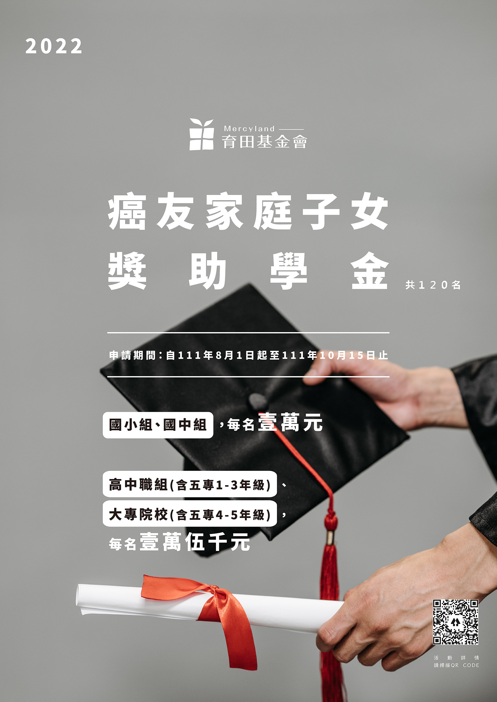 | 2022/09/01 財團法人育田社會福利慈善基金會「2022癌友家庭子女獎助學金」相關資料。 |