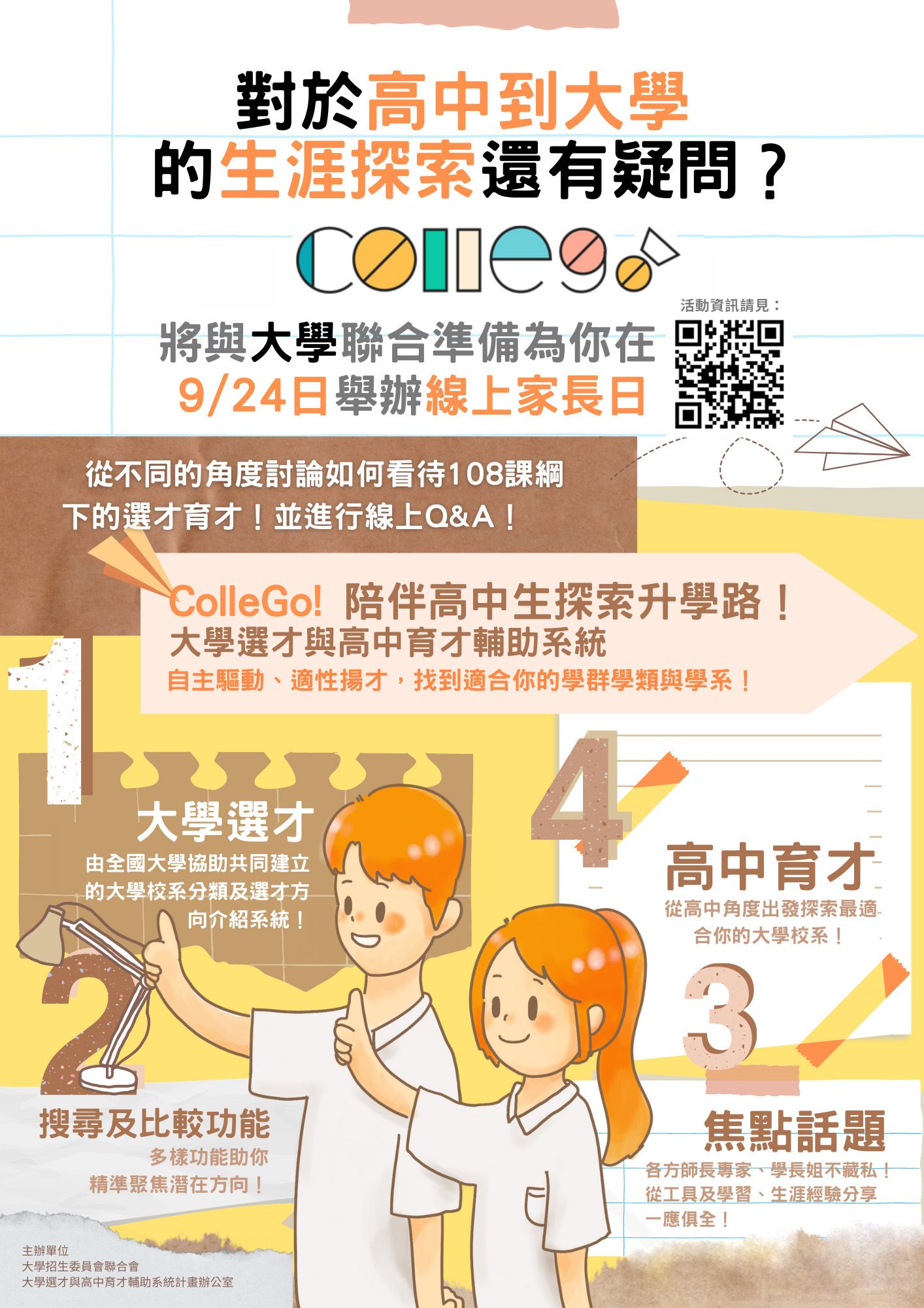 2022.9.24(六)來ColleGo! 聽大學想對高中師生家長分享的選才育才分享!