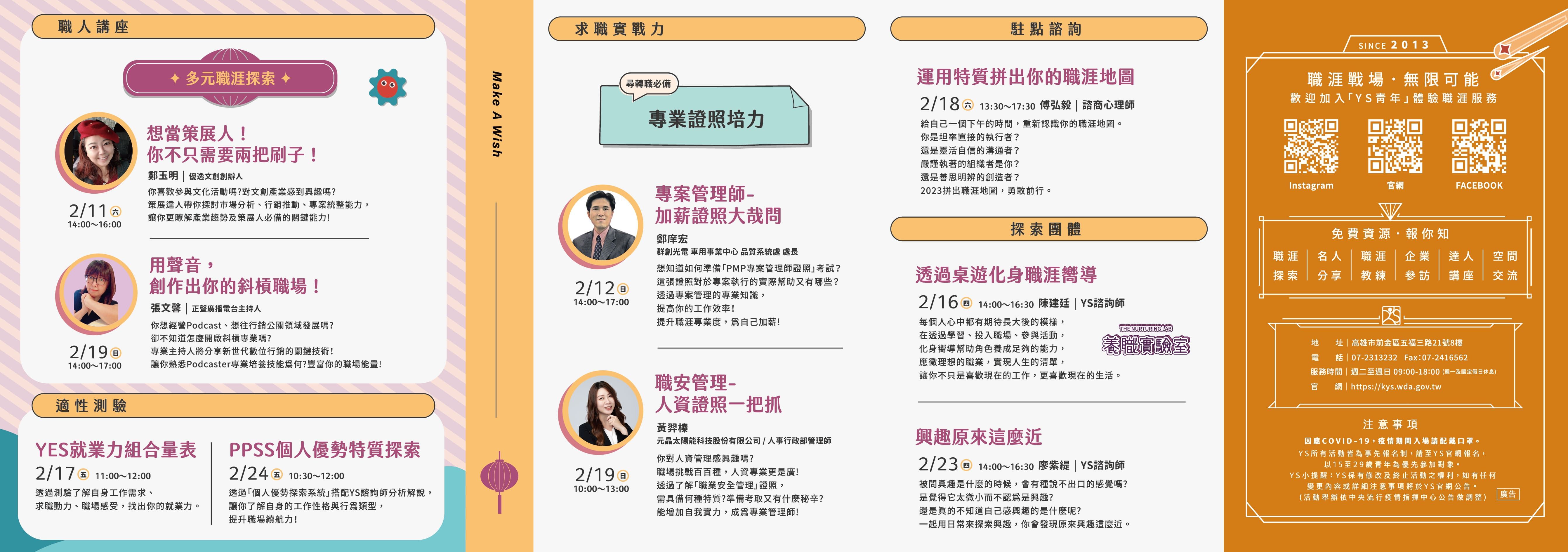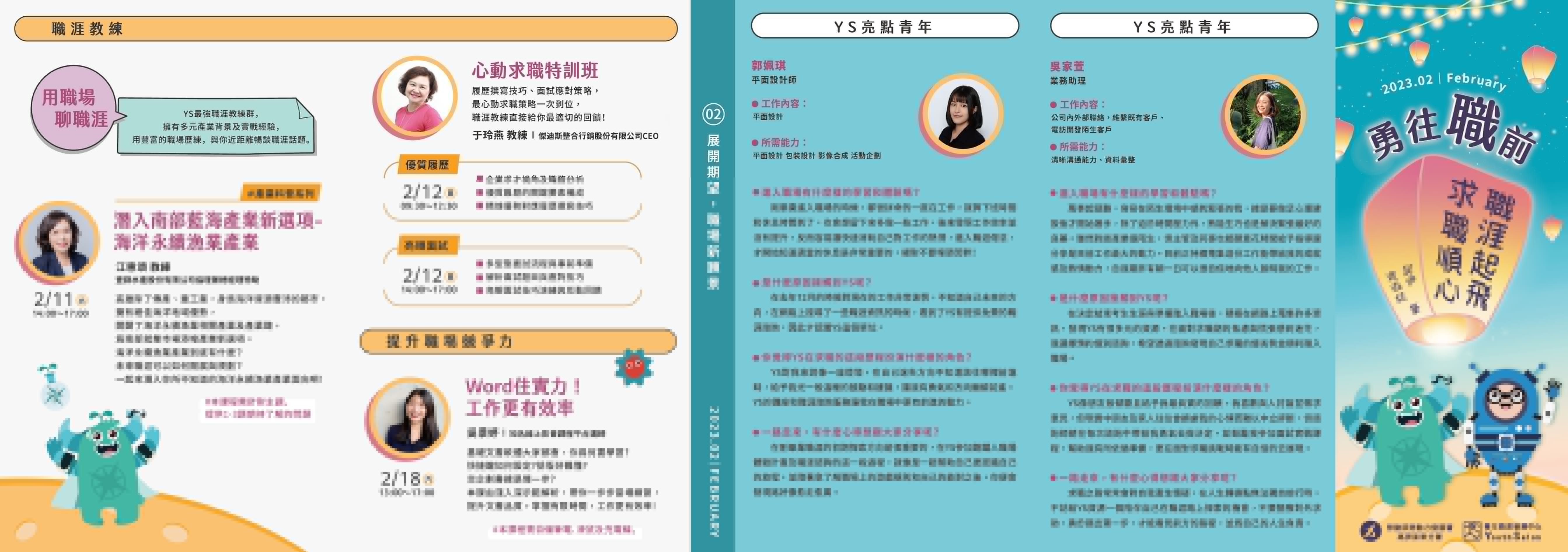 勞動部勞動力發展署高屏澎東分署「青年職涯發展中心」(Youth Salon,以下簡稱YS)112年2月活動DM