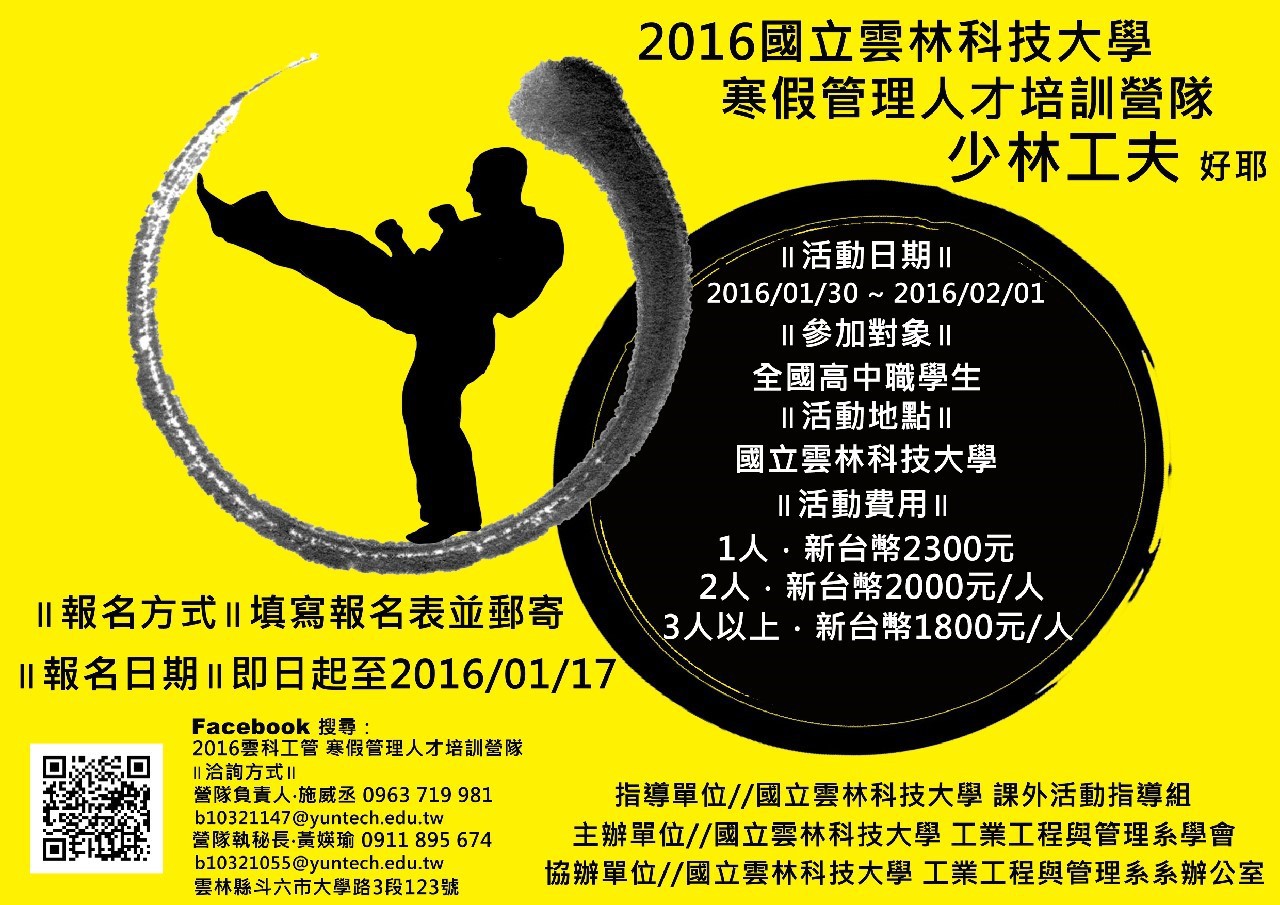 | 2016/01/07 轉知雲林科技大學辦理寒假管理人才培訓營隊 |