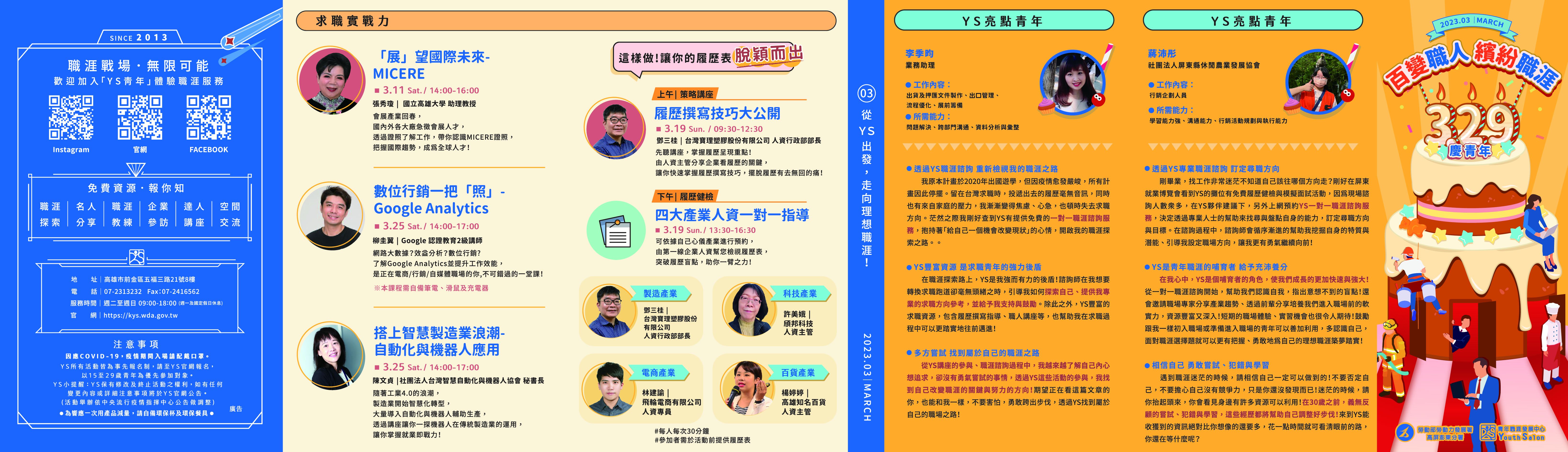 勞動部勞動力發展署高屏澎東分署「青年職涯發展中心」(Youth Salon,以下簡稱YS)112年3月活動DM