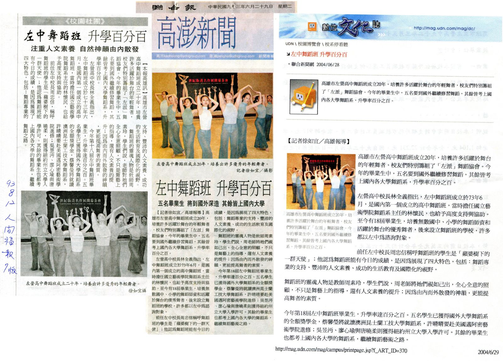 930628左中舞蹈班升學百分百,20週年籌組左派舞蹈協會。(聯合豹、人間福報、數位文化誌)