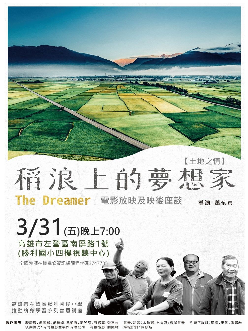(一)第一場次:講題『土地之情-稻浪上的夢想家電影播放及映後座談』,時間112年3月31日週五19:00,研習代碼3747735。
