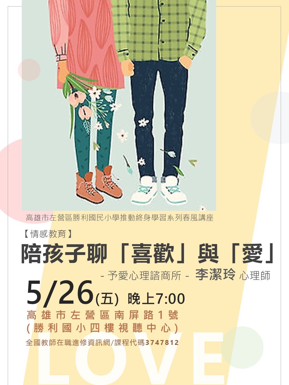 (三)第三場次:講題『情感教育-陪孩子聊喜歡與愛』,時間112年5月26日週五19:00,研習代碼3747812。