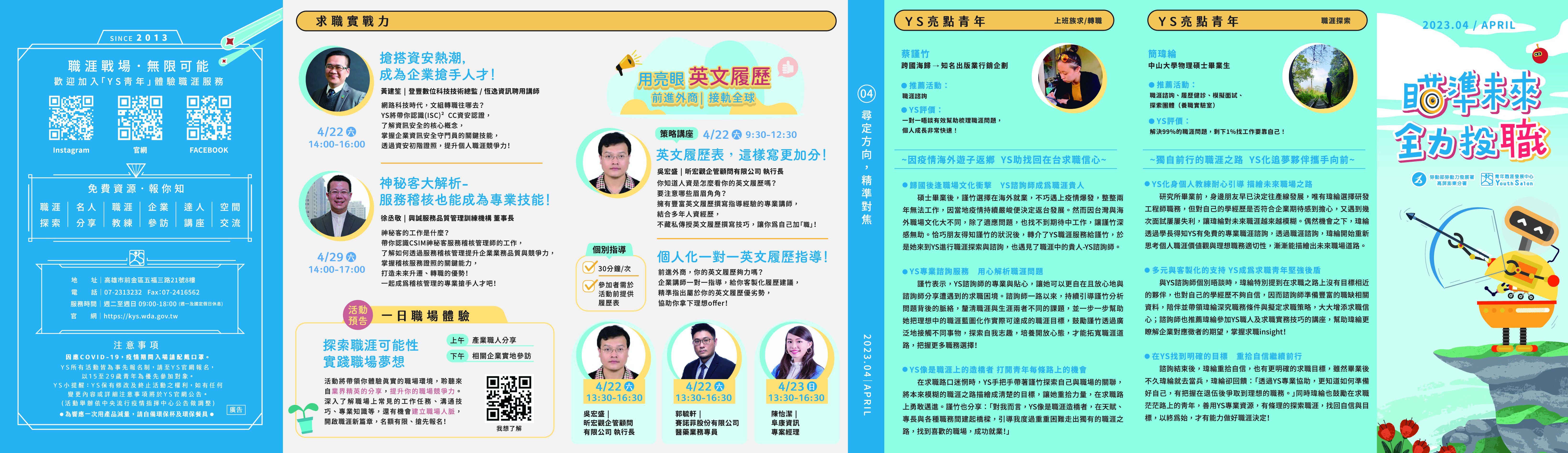 勞動部勞動力發展署高屏澎東分署「青年職涯發展中心」(Youth Salon,以下簡稱YS)112年4月活動DM