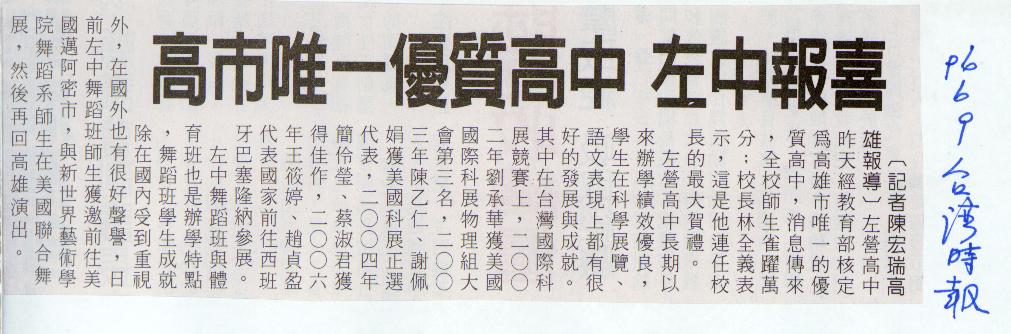 960609高雄市唯一優質高中,左中報喜。