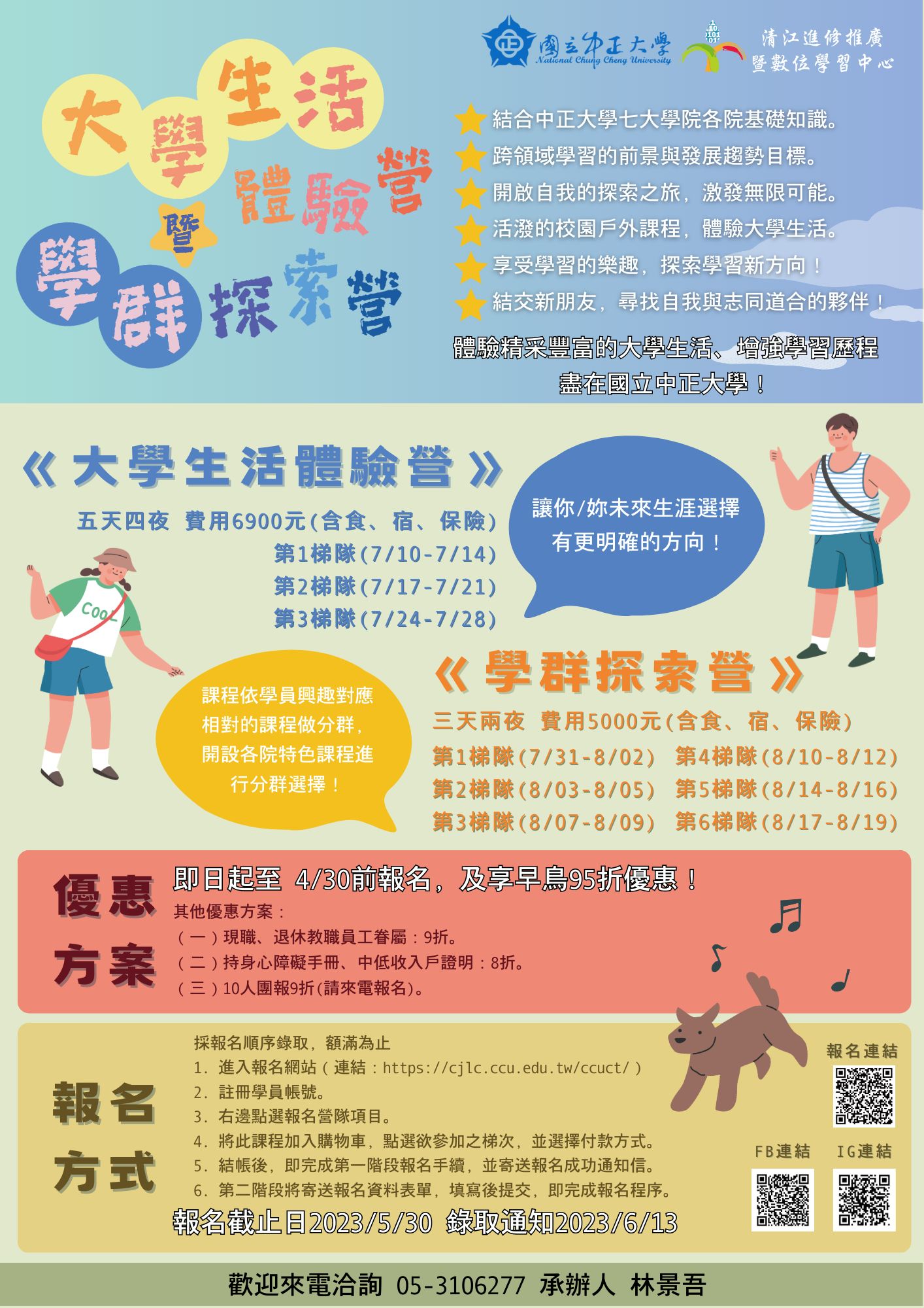| 2023/04/06 112年度國立中正大學大學生活體驗營暨學群探索營 |