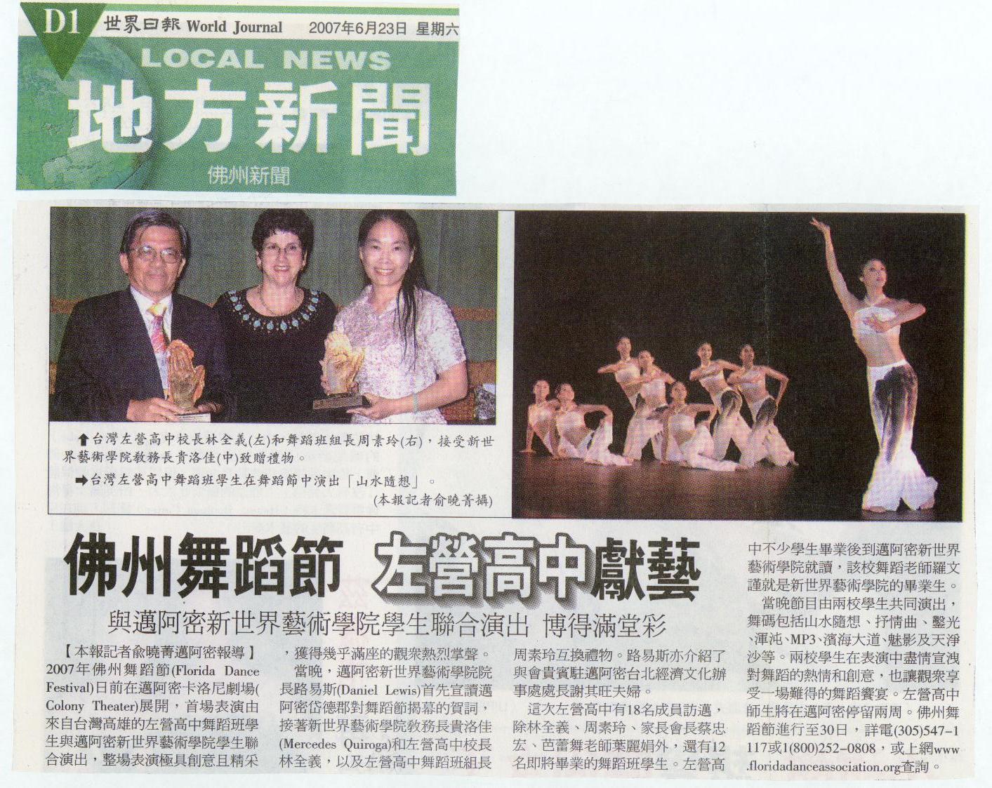 960628第29屆美國佛洲舞蹈節,左營高中獻藝。
