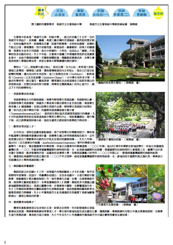 | 2016/01/12 990301歷久彌新的優質學府_左營高中 飛揚雜誌62期 |