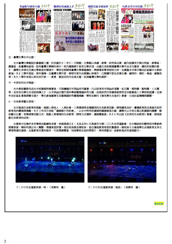 市主辦2009 世界運動會,左中舞蹈班和體育班同學參與開幕表演,精彩的演出
