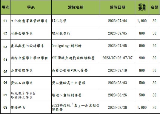 2023年暑假南華大學針對高中職學生規劃了八個營隊,檢送相關資訊如附檔,