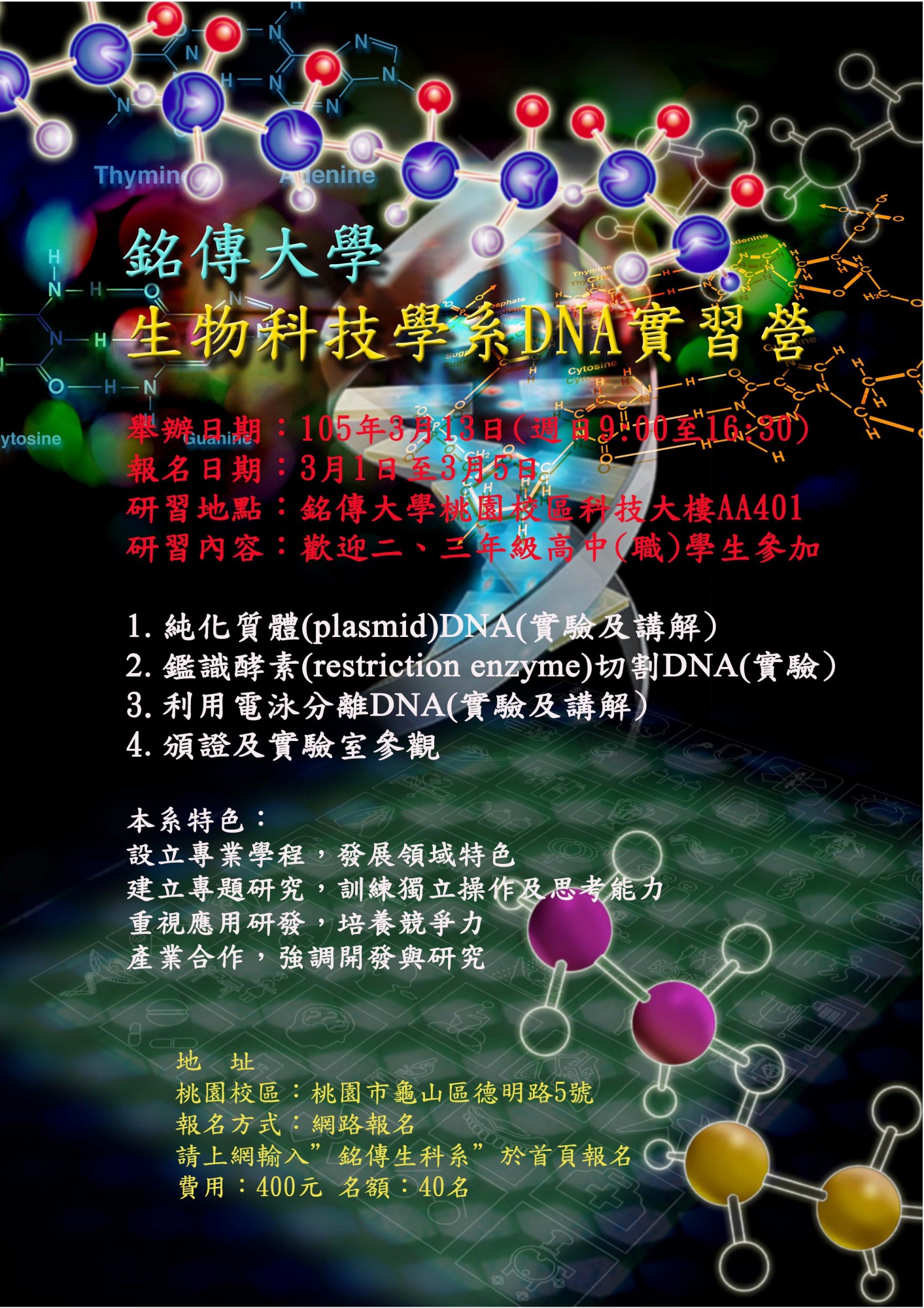 | 2016/02/19 銘傳大學系於105年3月13日(星期日)舉辦「DNA實習營」 |