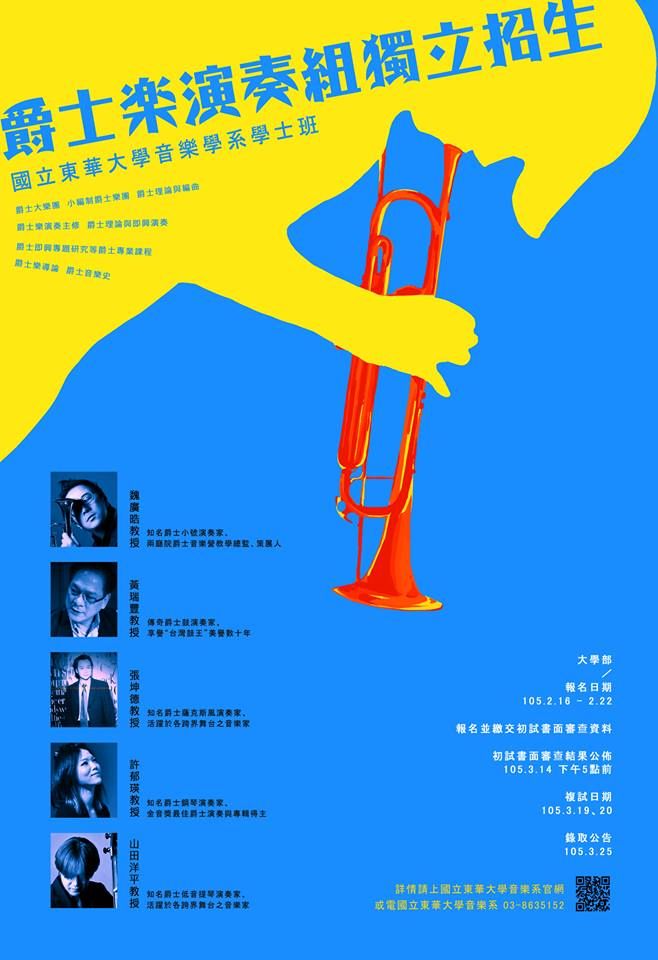 | 2016/02/20 105學年度學士班爵士音樂類單獨招生 |