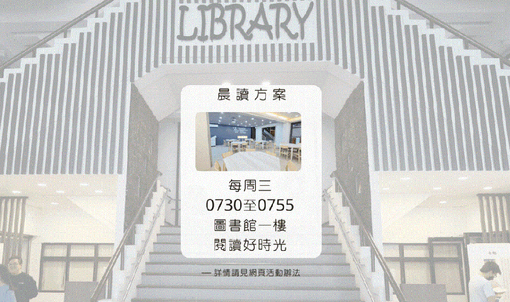 為推廣學生閱讀習慣與促進閱讀風氣,本學期圖書館每星期三
