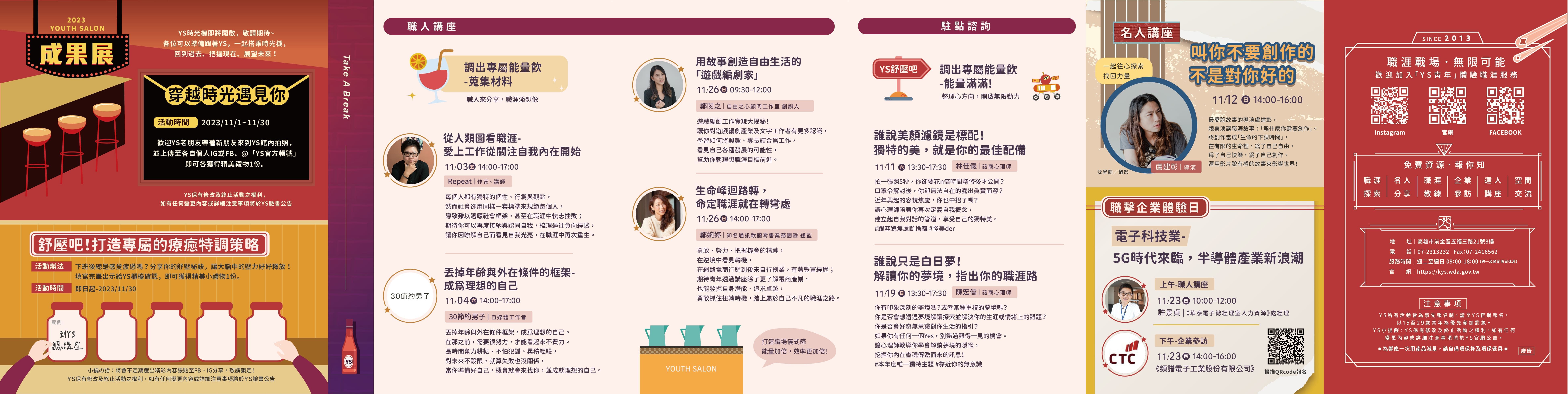 | 2023/11/02 「青年職涯發展中心」(Youth Salon,以下簡 稱YS)112年11月活動DM |