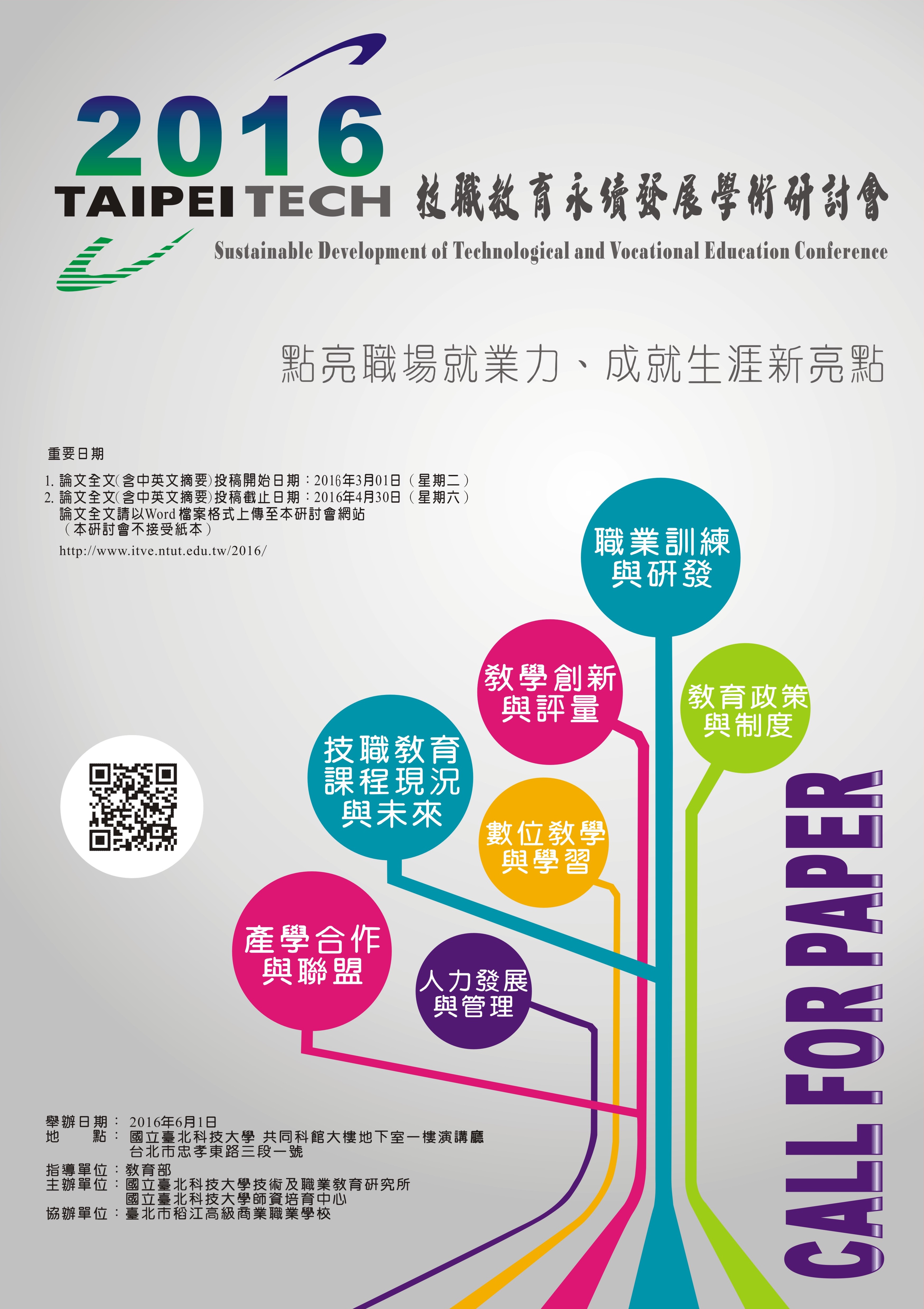 三、本研討會網址:http://www.itve.ntut.edu.tw/2016