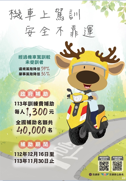 一、交通部公路局訂定「推動機車駕駛訓練制度計畫補助作業要點」,本(1