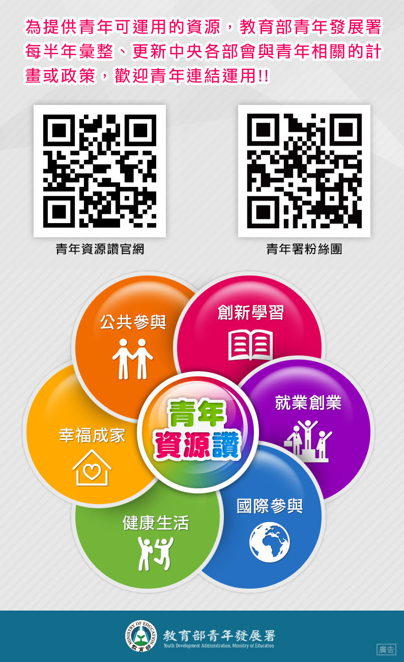 二、檢附網站EDM1份,詳細內容請上「青年資源讚」資訊網查詢http://youth-resources.yda.gov.tw/。
