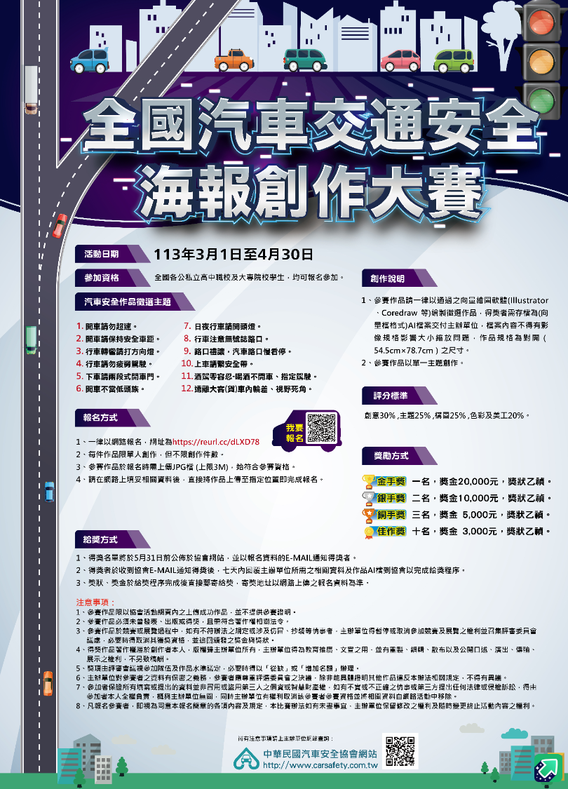 | 2024/03/06 113年度全國汽車交通安全海報創作大賽 |