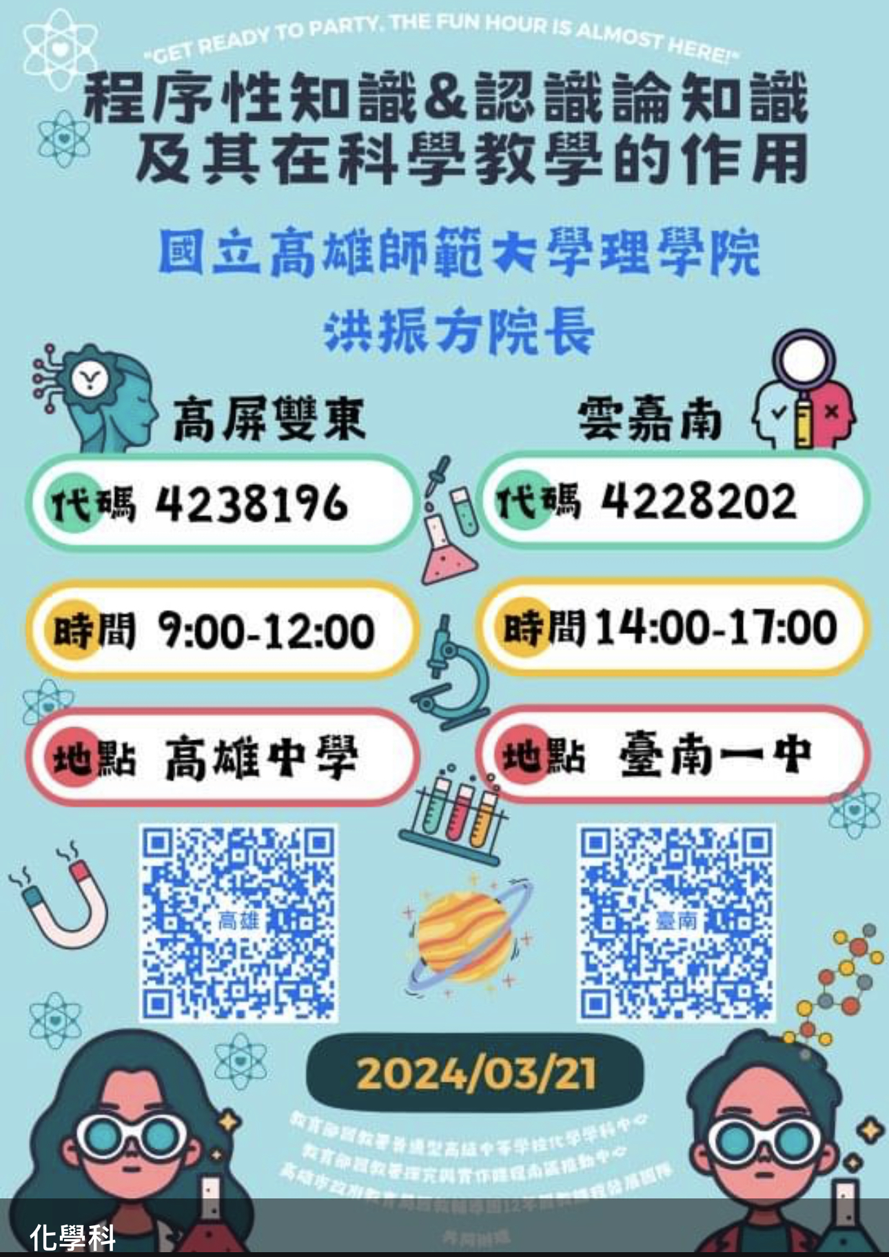 | 2024/03/07 科學探究大師講座─程序性知識和認識論知識及其在科學教學的作用 |