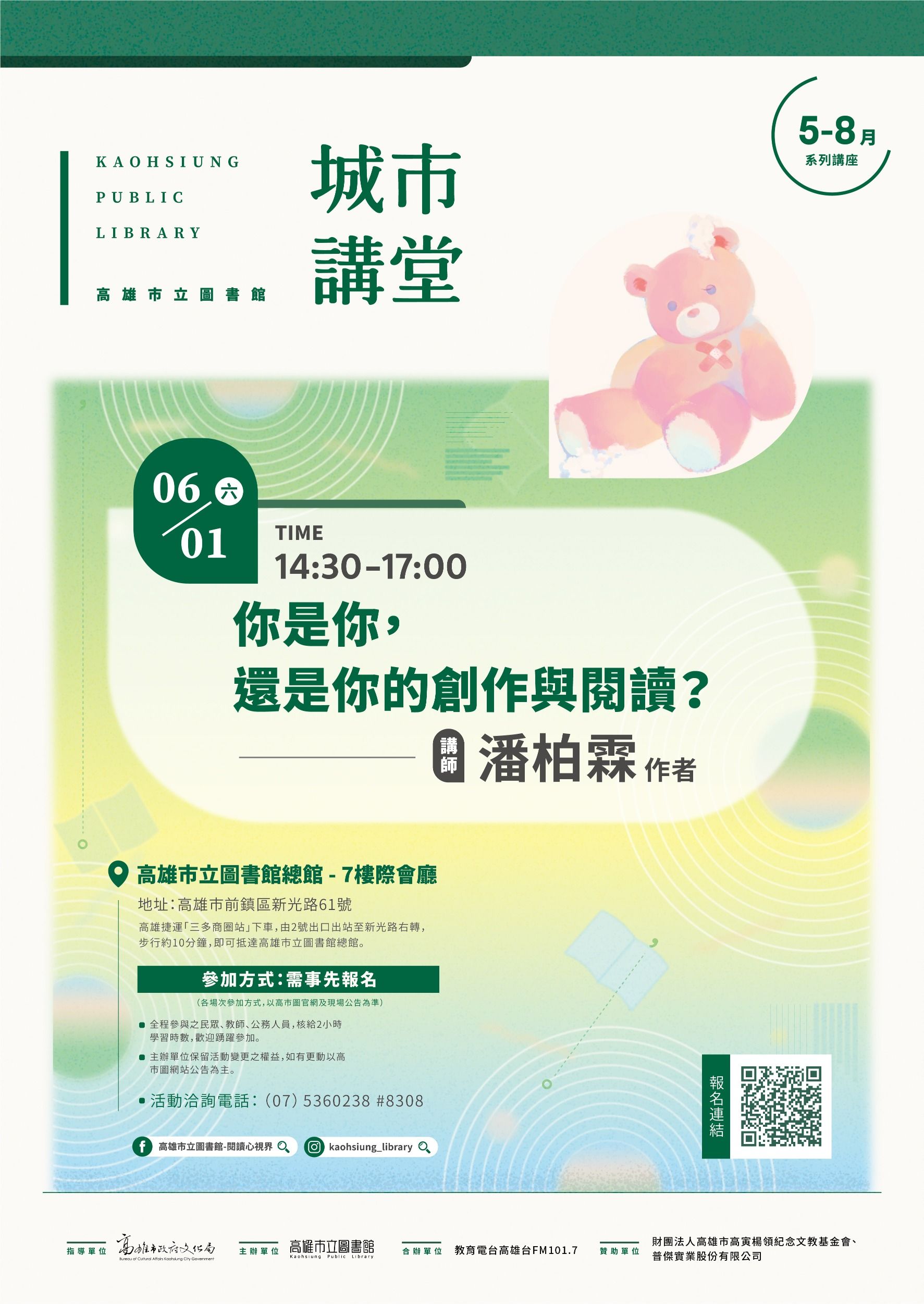 | 2024/05/17 轉知高雄市立圖書館辦理「2024城市講堂」6月份講座活動 |