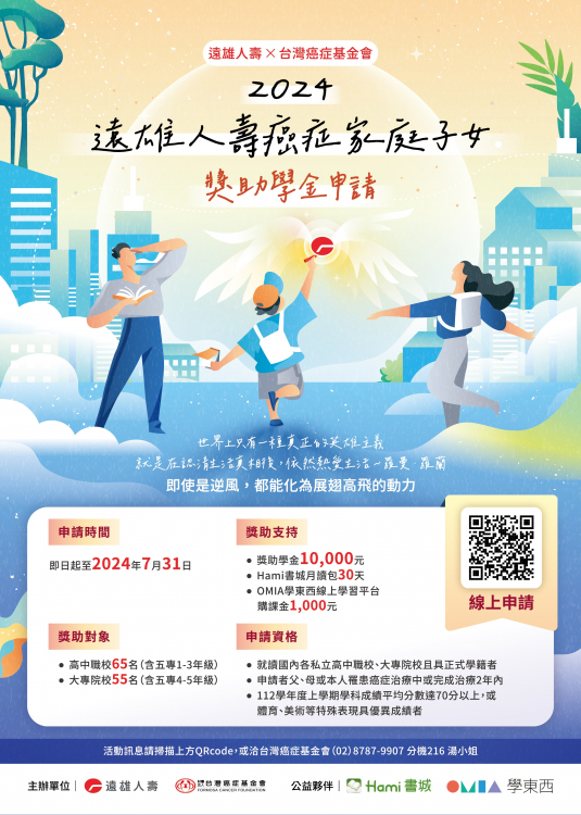 | 2024/05/24 「2024台灣癌症基金會x遠雄人壽-癌症家庭子女獎助學金」 |
