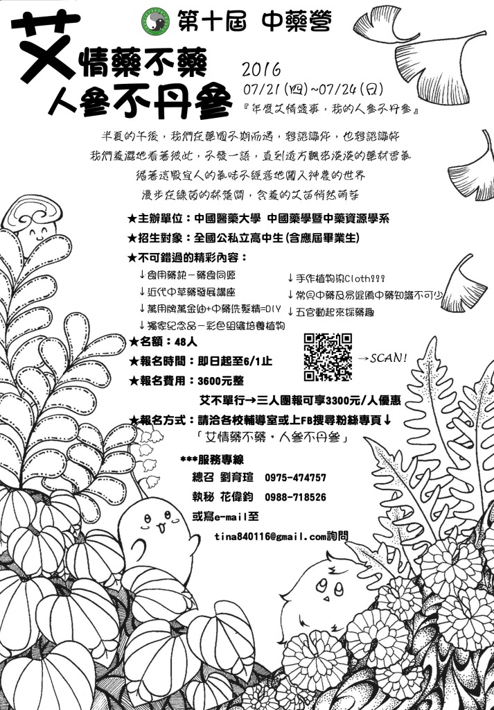 | 2016/04/12 轉知中國醫藥大學舉辦「中藥研習營」 |