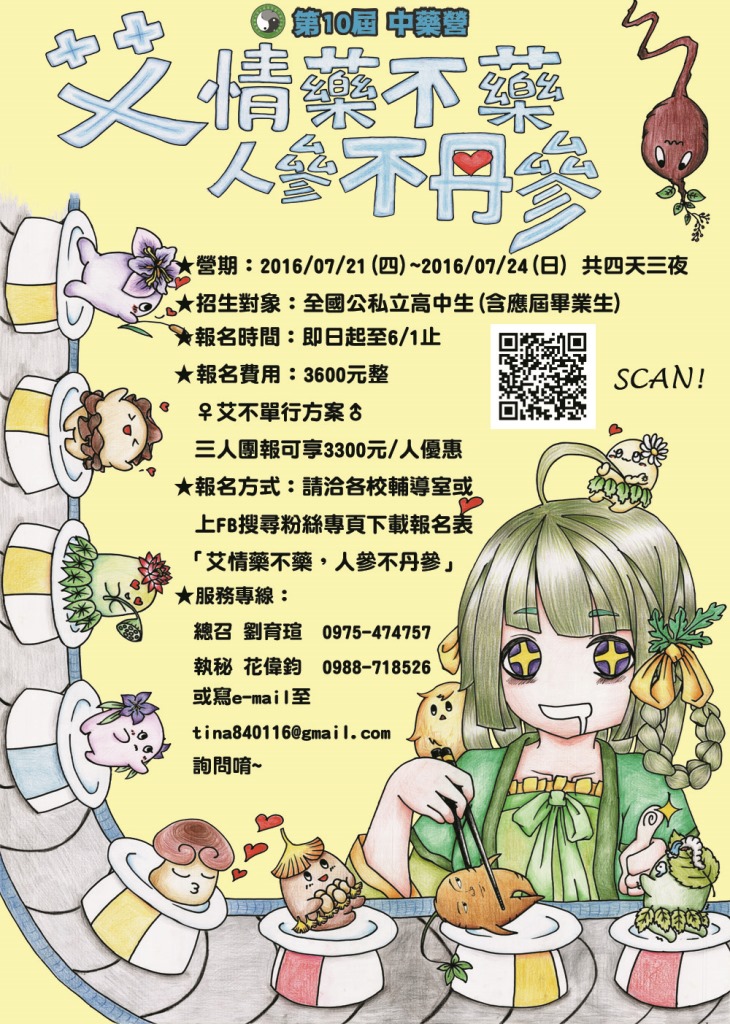 三、活動聯絡人:該校中國藥學暨中藥資源學系二年級劉育瑄同學連絡電話0975-474757。