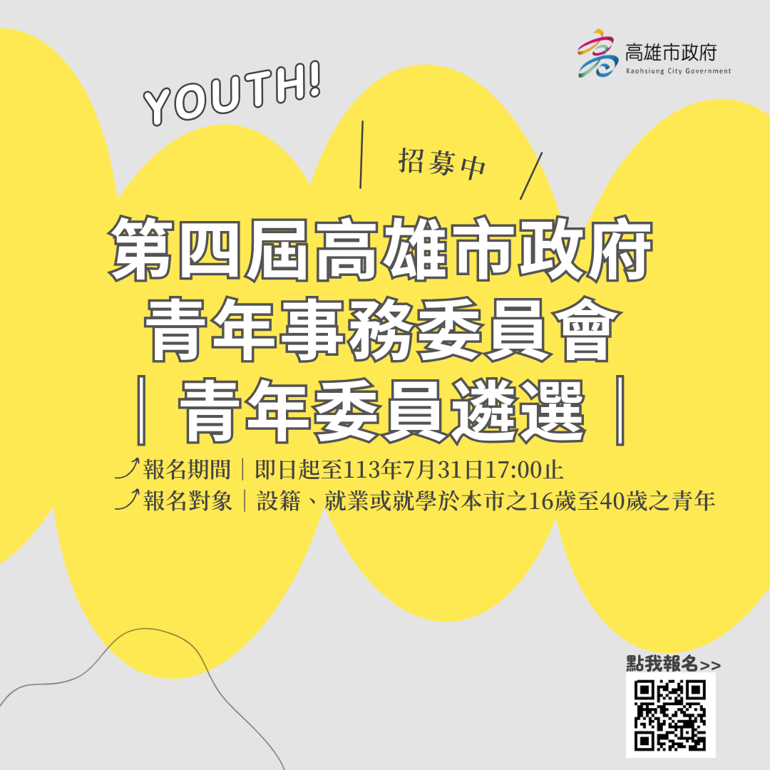 | 2024/07/31 「第四屆高雄市政府青年事務委員會」青年委員遴選 |