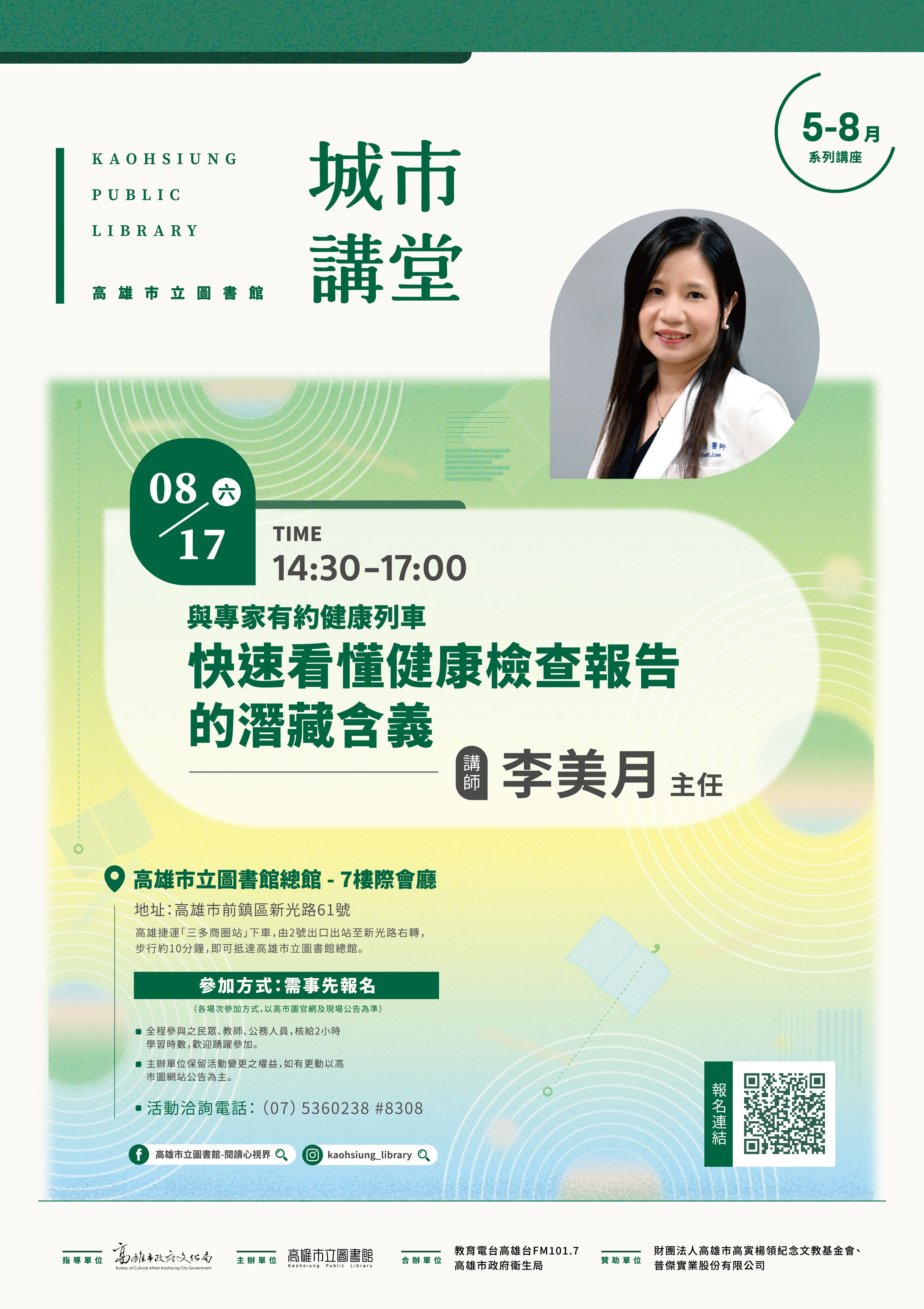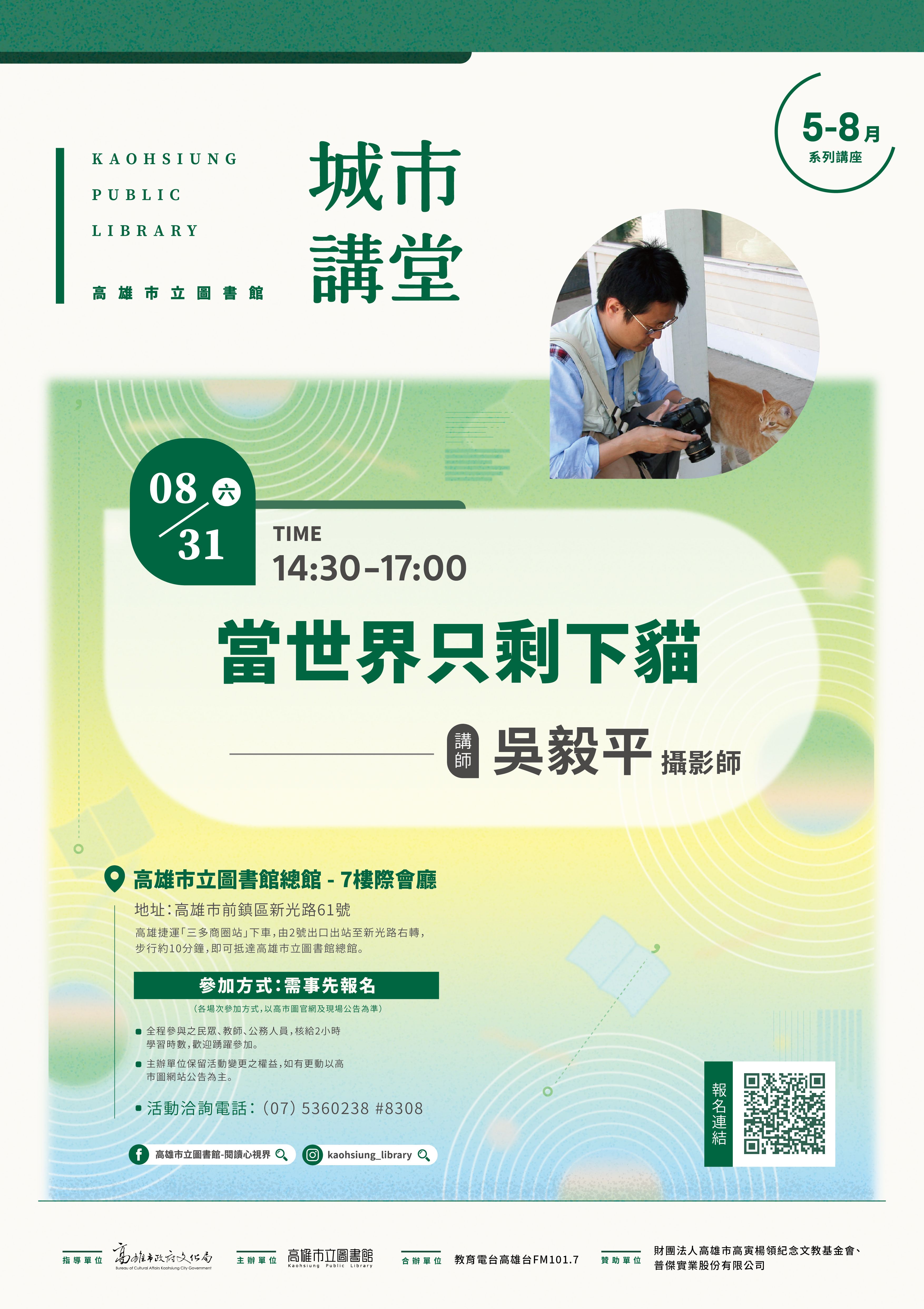 | 2024/08/02 轉知高雄市立圖書館辦理「2024城市講堂」8月份講座活動 |