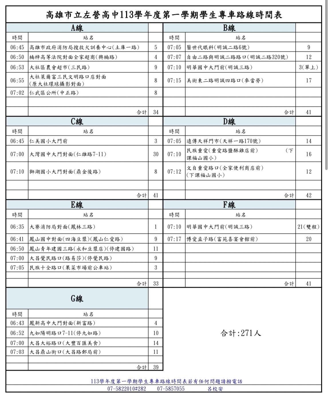 | 2024/08/27 [更新]113學年第1學期學生專車座位表/路線時間及搭乘學生名冊(ABCDEFG計7線) |