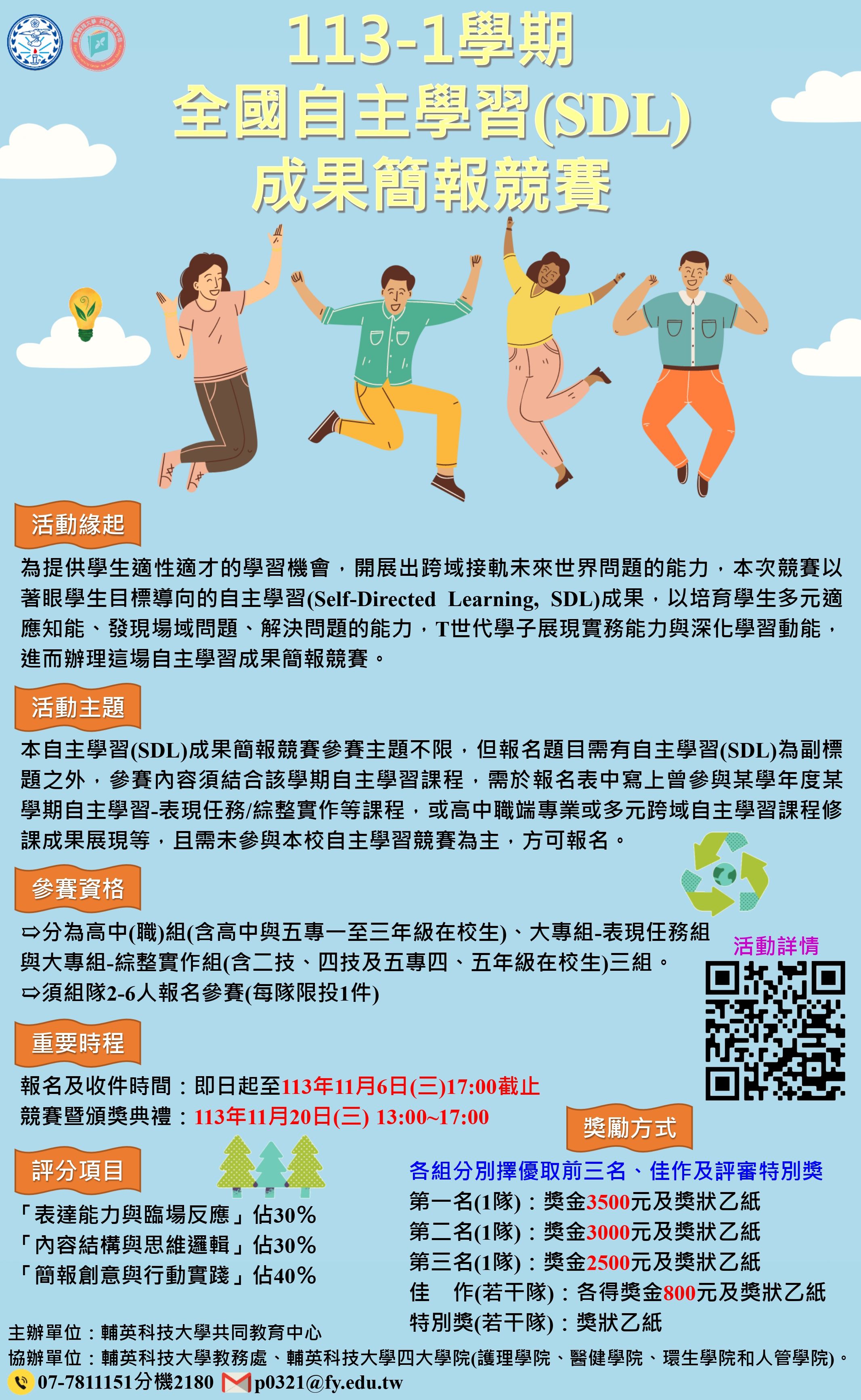 | 2024/09/10 轉知113學年度第1學期輔英科技大學全國自主學習(SDL)成果簡報競賽活動 |