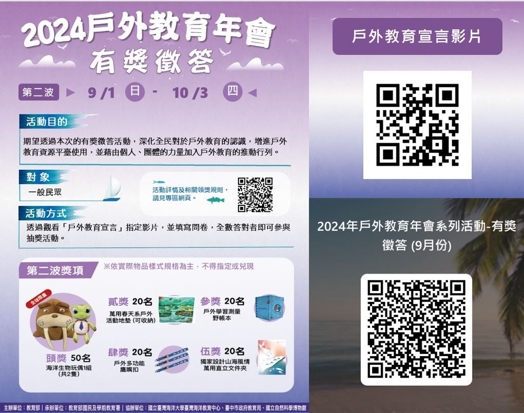 | 2024/09/30 「戶外教育第二波有獎徵答」 |