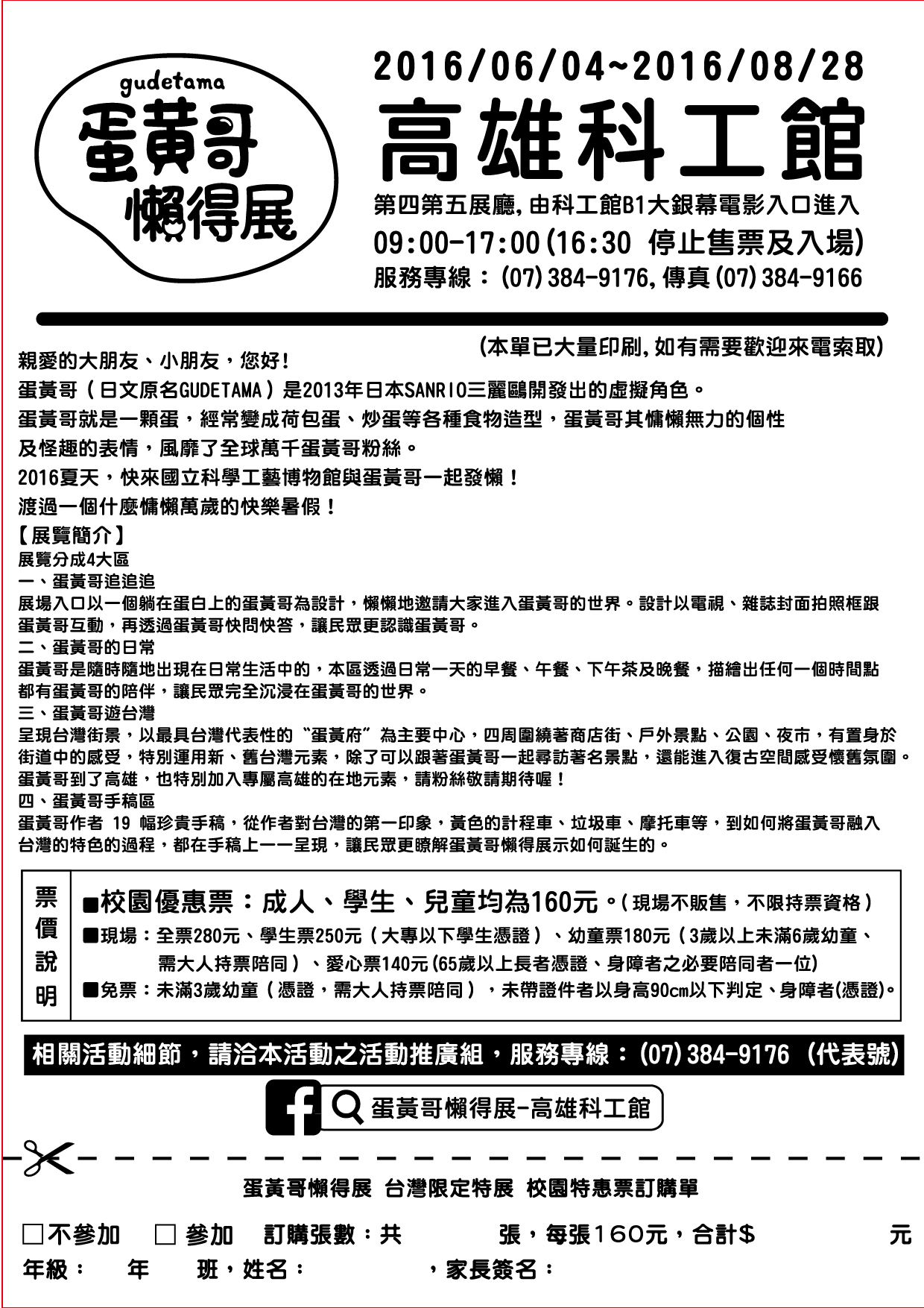 | 2016/05/02 轉知國立科學工藝博物館辦理「蛋黃哥懶得展」特展 |